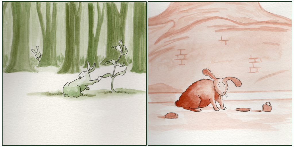In between, through the character of Little Bunny,